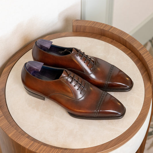 Through Arterton, clients can fully customise their ACME Shoemaker order to reflect their personal vision. From selecting the last shape and leather type, to specifying details such as patina, stitching, and sole finishing, every element can be tailored. Whether you are seeking the perfect Made-to-Order refinement or the artistry of a full Bespoke commission, we guide you through each choice to ensure your pair is uniquely yours.