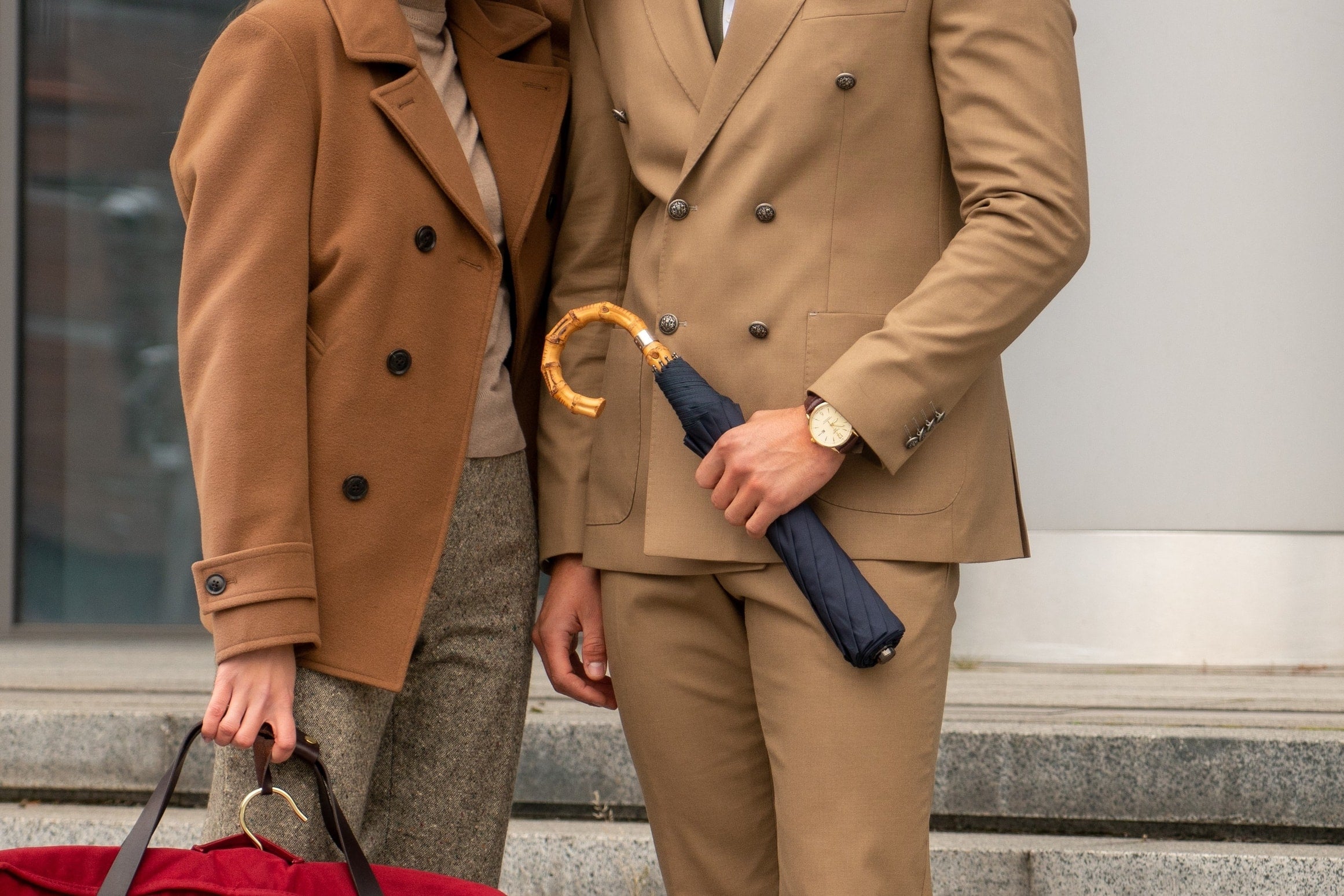 The telescopic umbrella is a convenient carry item, as it can be retracted into a length of only 44cm. It sports a solid wood handle (Brown Maple Crook or Bamboo Whangee).
