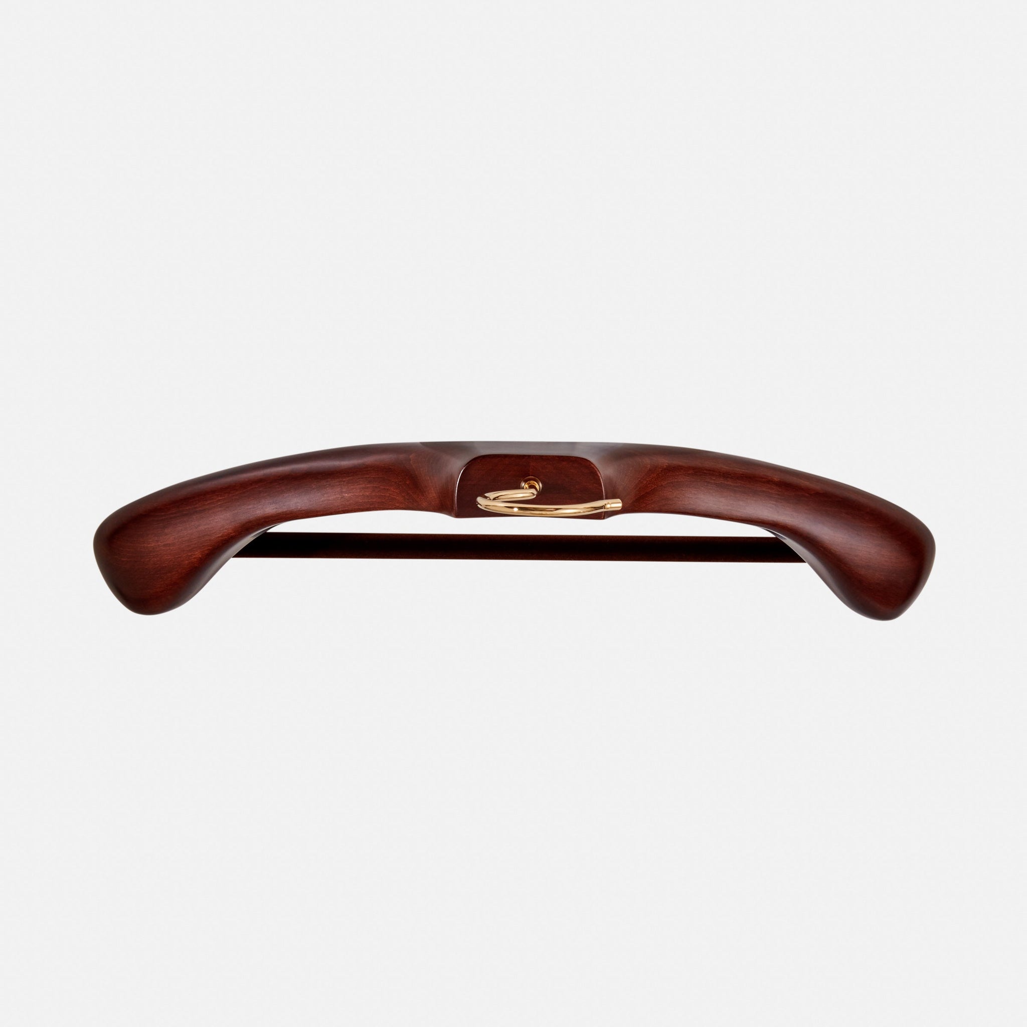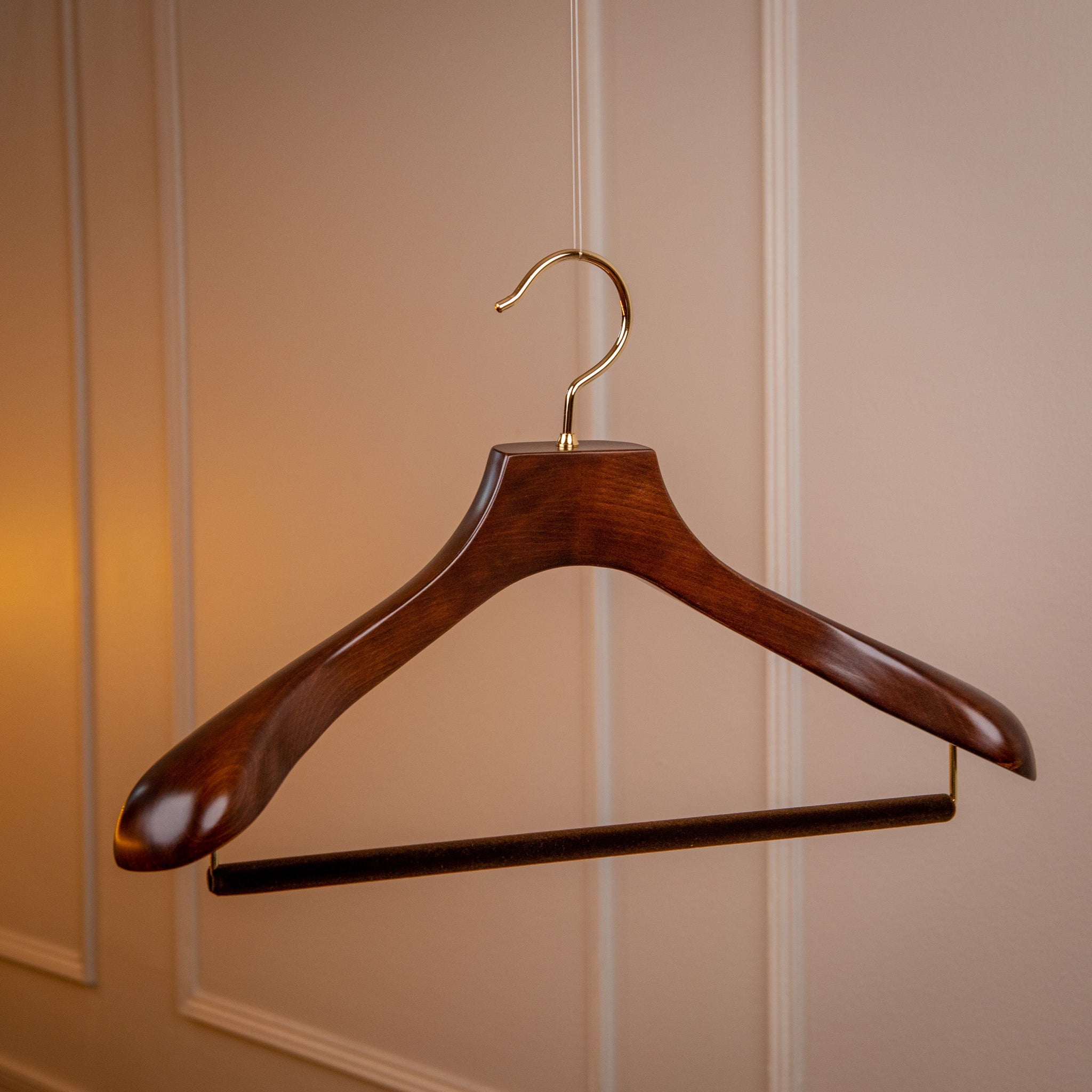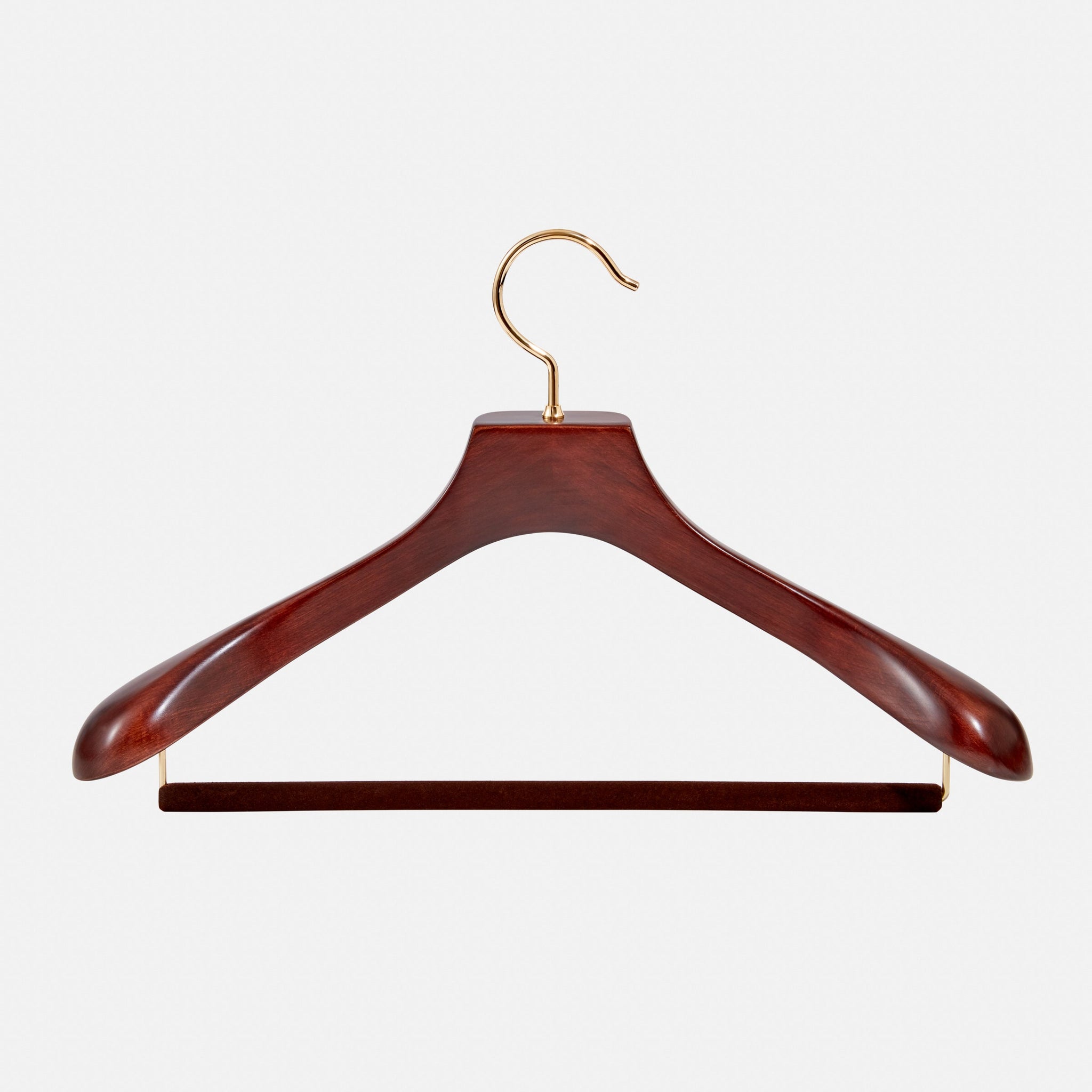 The contours of this hanger preserve the integrity of garments, keeping them wrinkle-free and away from unnecessary fabric wear (e.g. shoulder dimples, stretching).