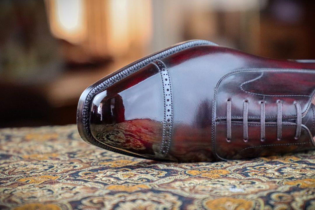 This Balmoral Oxford is made in full grained leather from Bonaudo tannery finished with handcrafted burgundy museum patina on our Y05 last.
