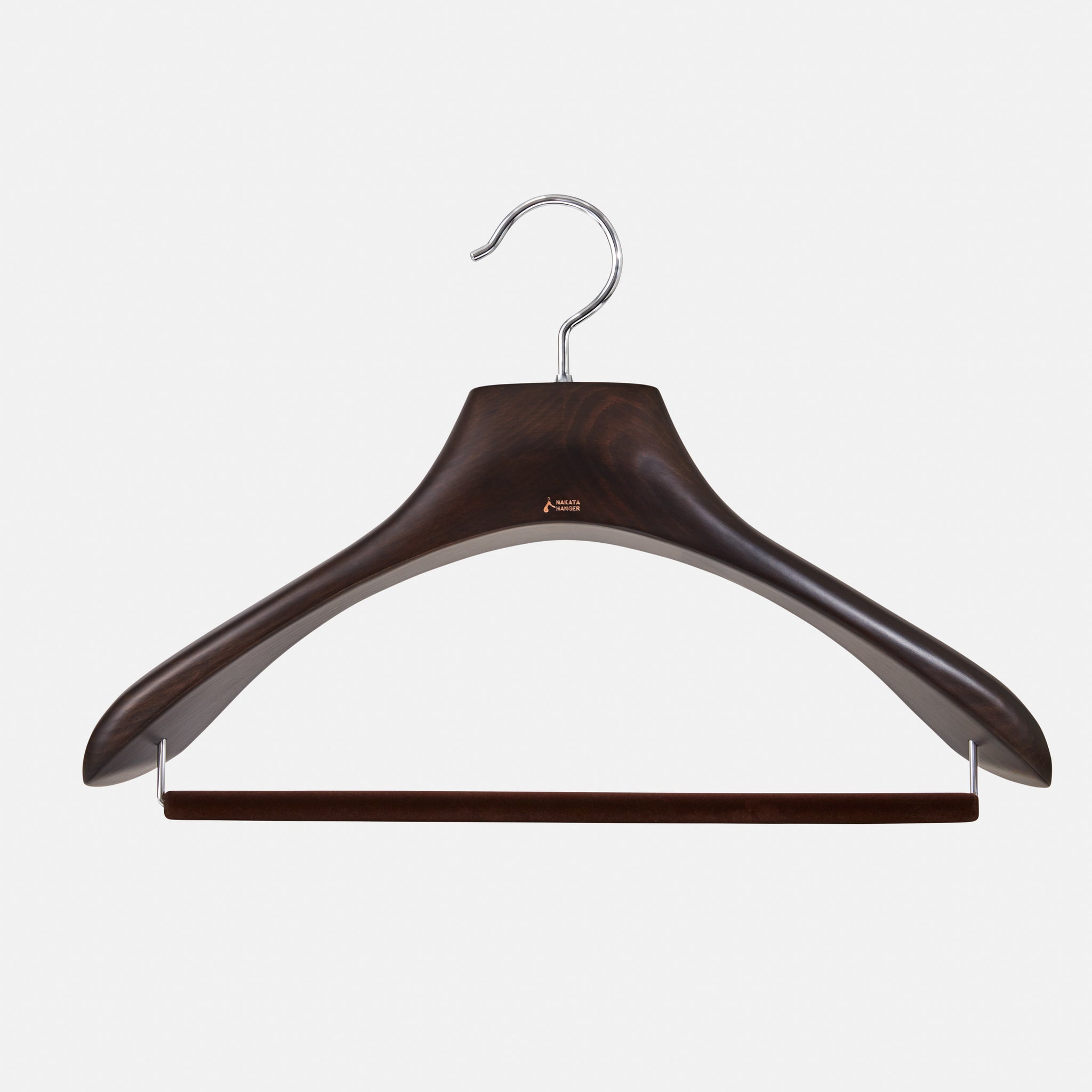 The creme de la creme. The AUT-03 specification from Nakata has additional contouring around the neck and shoulder bars to further preserve the integrity of the most delicate or loosely woven of clothing. We dare say that this is one of the most ergonomic suit hangers available. Sold as single pieces.