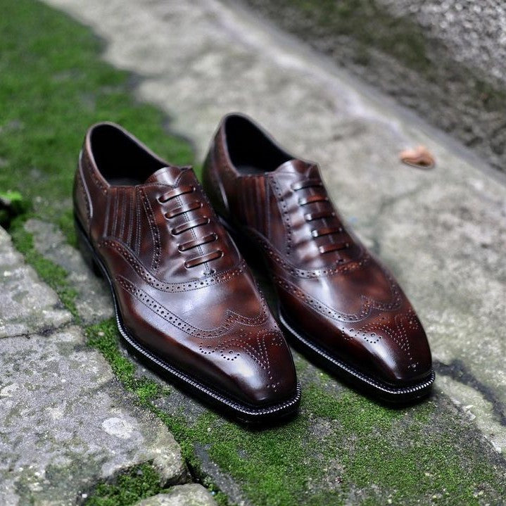 The "Lazyman" is a moniker given to a type of brogues that do not feature any laces, but rather, elastic side gussets. It is said to have been originally designed for Sir Winston Churchill.