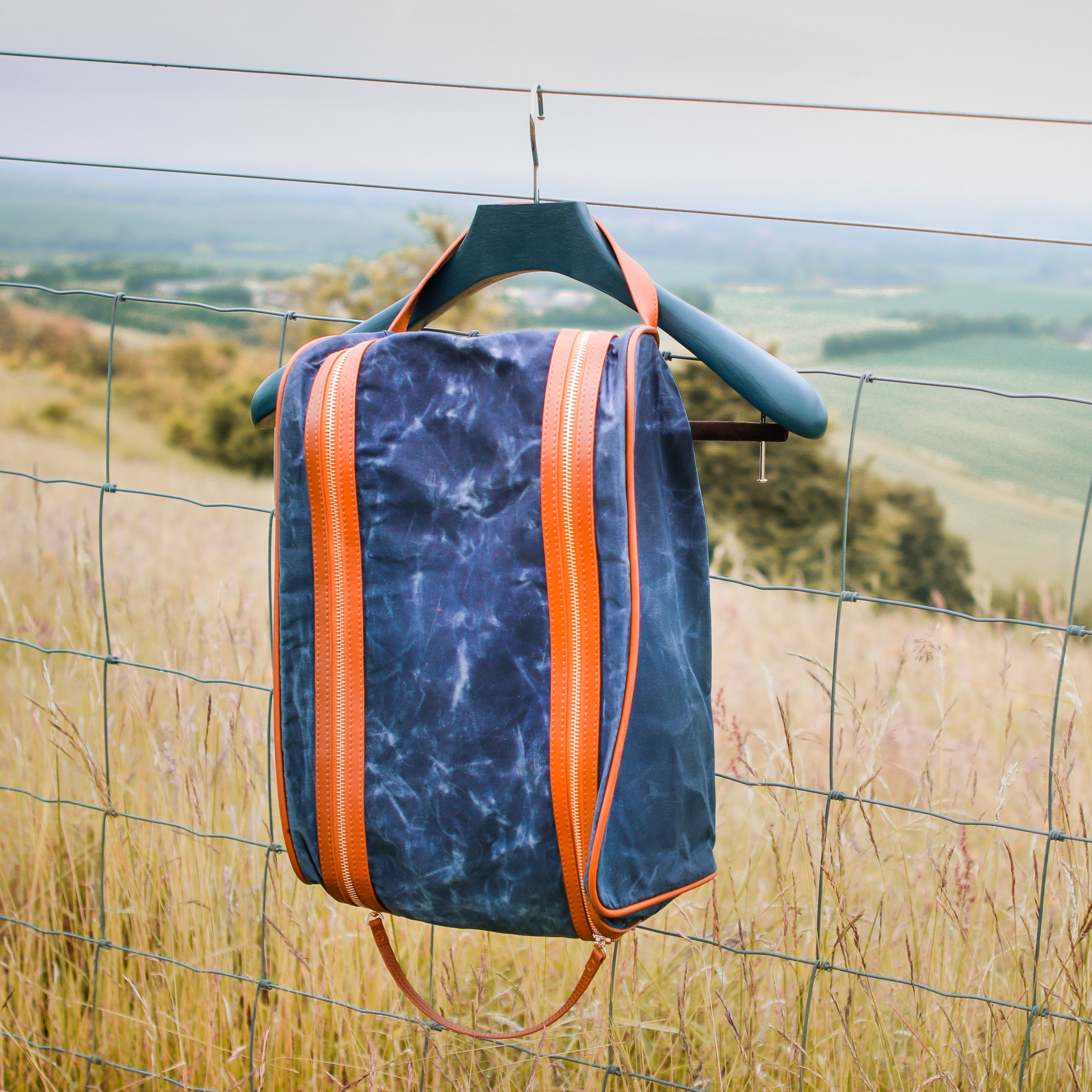 The fabric is densely woven and then double waxed with parrafin oils. Unlike artificial means of waterproofing or employing plastics, the bag can be re-waxed, if need be, as per British tradition.