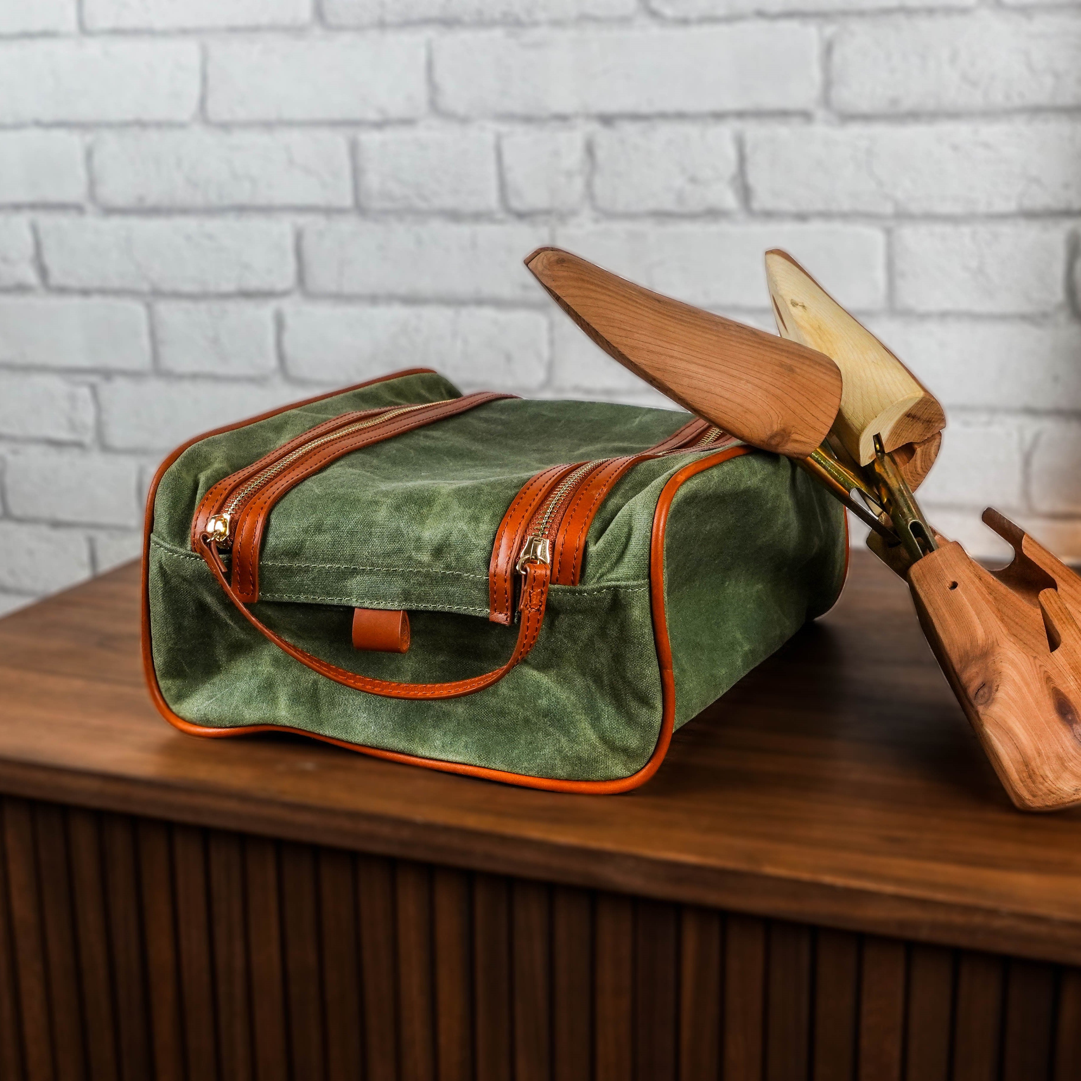 The Signature Shoe Bags are composed of 10 oz double waxed cotton, which has been coated with natural paraffin oil.
