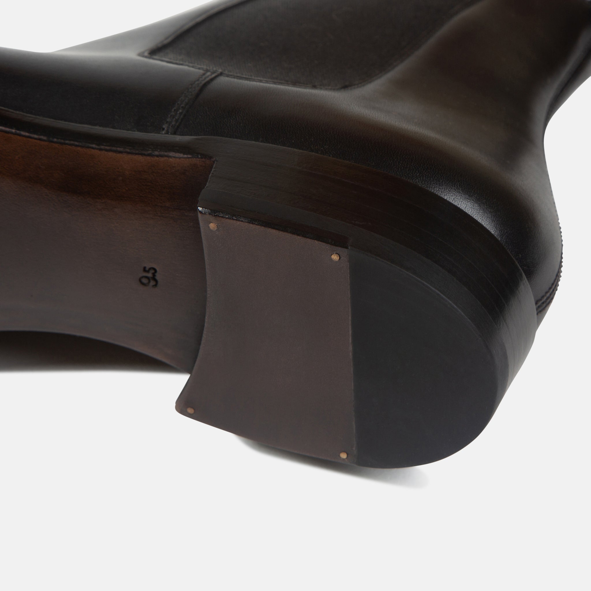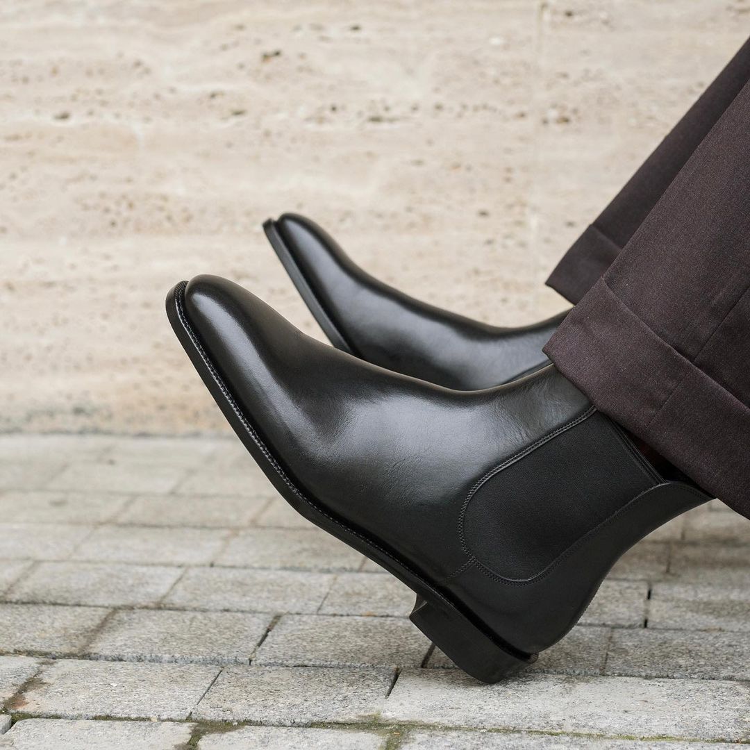 This Chelsea boot is a classic as it's an all-rounder in terms of formality. These hand-welted shoes feature a narrow waist, bark-tanned leather soles, and are cut in a way to be elegant. The name of the style derives from the Chelsea borough of London, where historically the young and fashionable were thought to cluster.